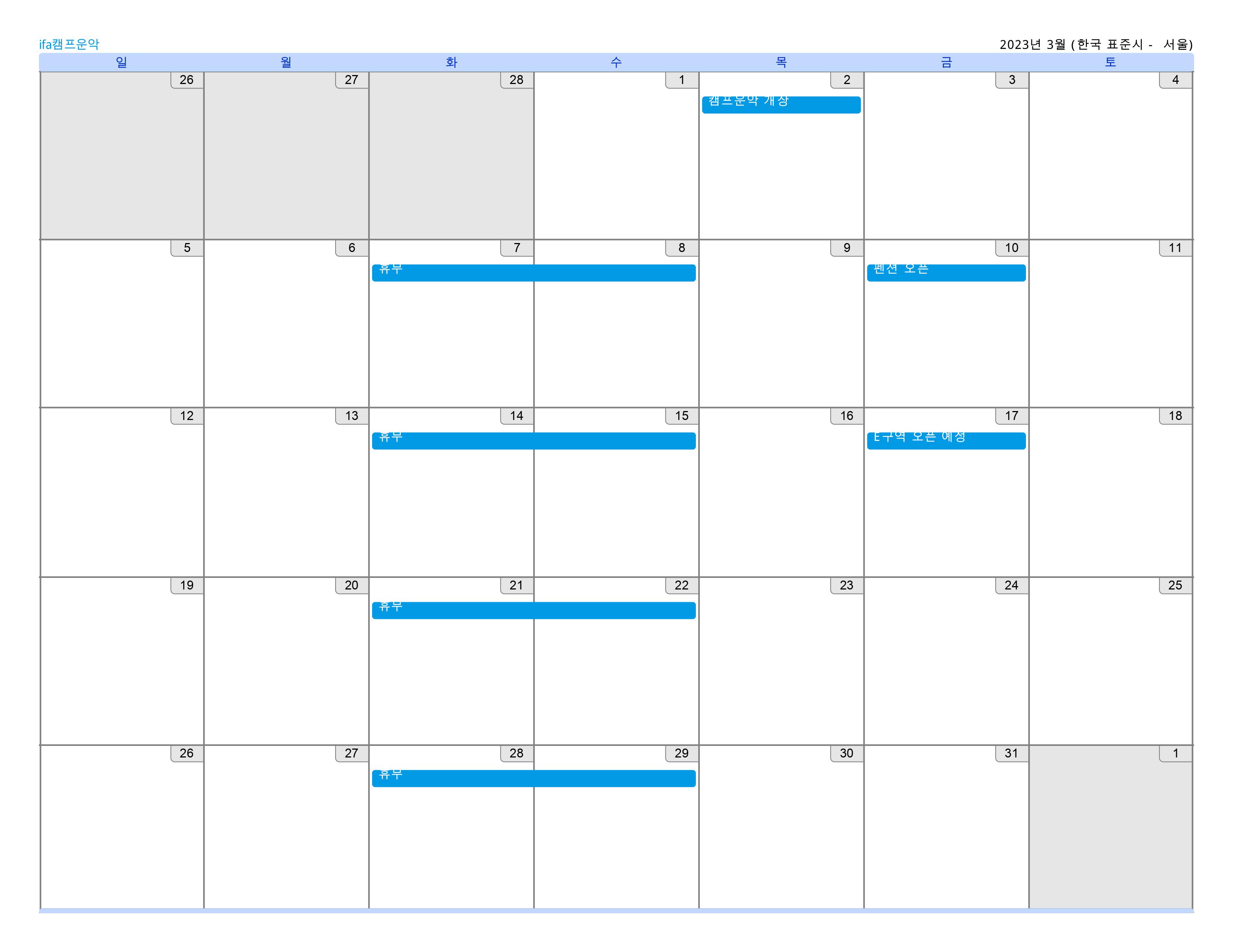 캠핑장 운영, 점검 등에 따라 휴무 일정은 변경될 수 있습니다.