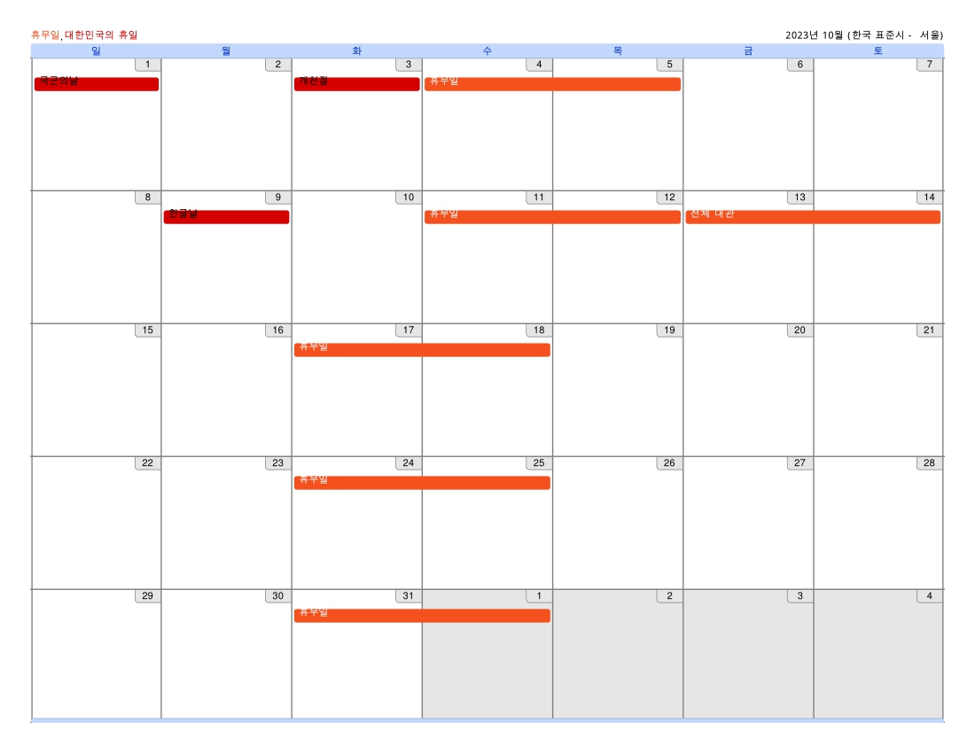 ▶ 10월 휴무일