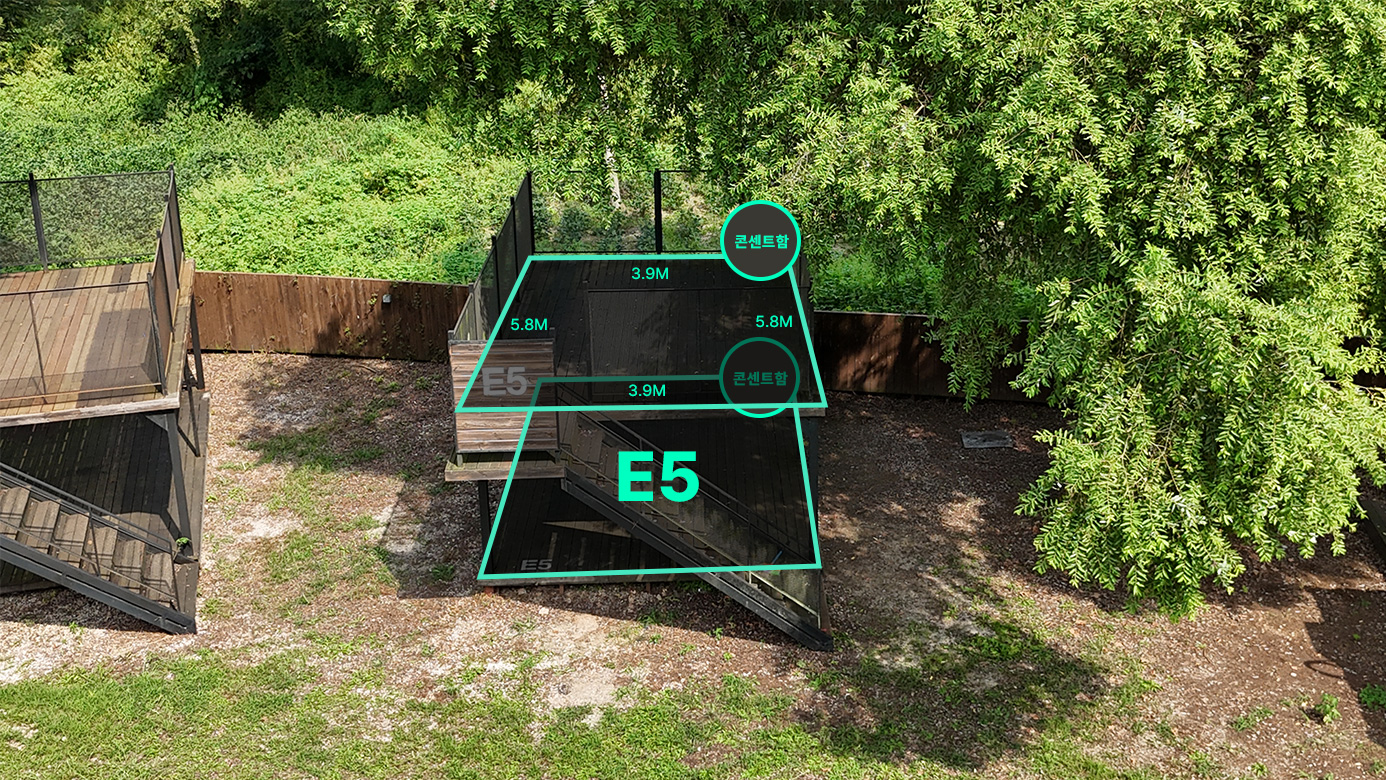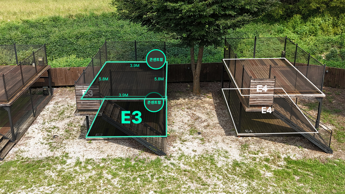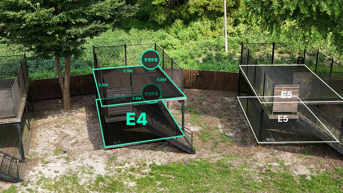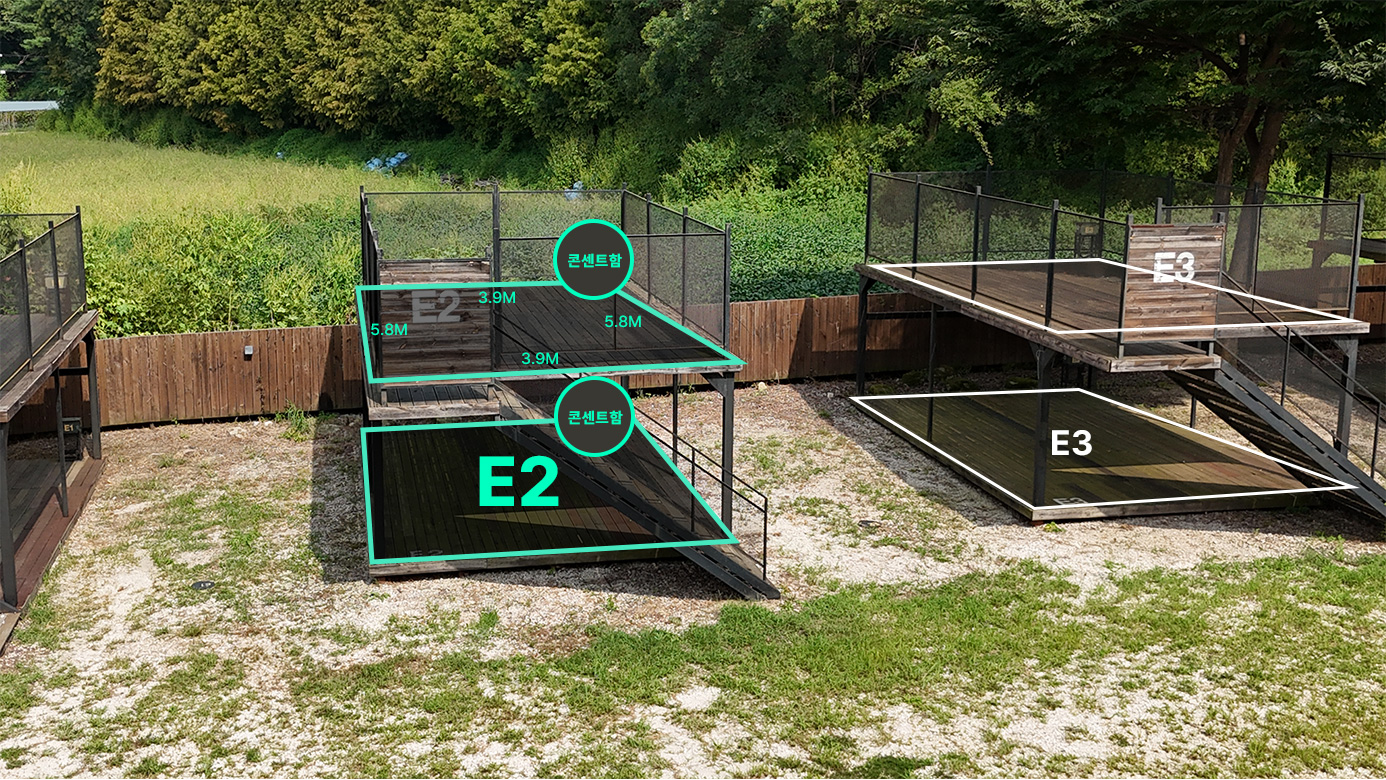 E1~E5 강자갈 위에 설치된 2층 데크사이트 5개