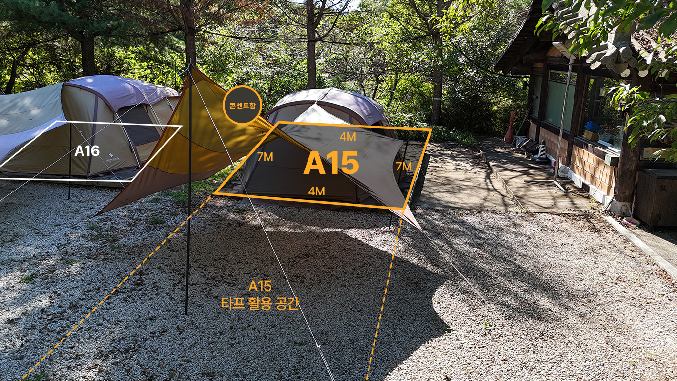 약 5 X 7M 데크의 글램핑(캠핑체험) 사이트 3동 운영