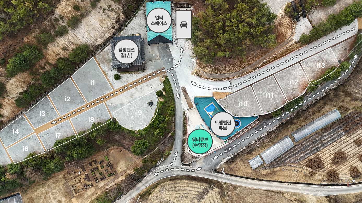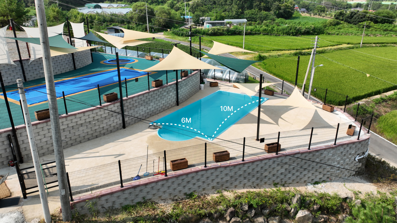 i구역 입구에 위치한 수영장(6x10), 방방이(대1, 소1)