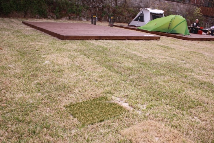 장점: 천연잔디, 나무그늘, 넓은 데크, 넓은 간격,.....