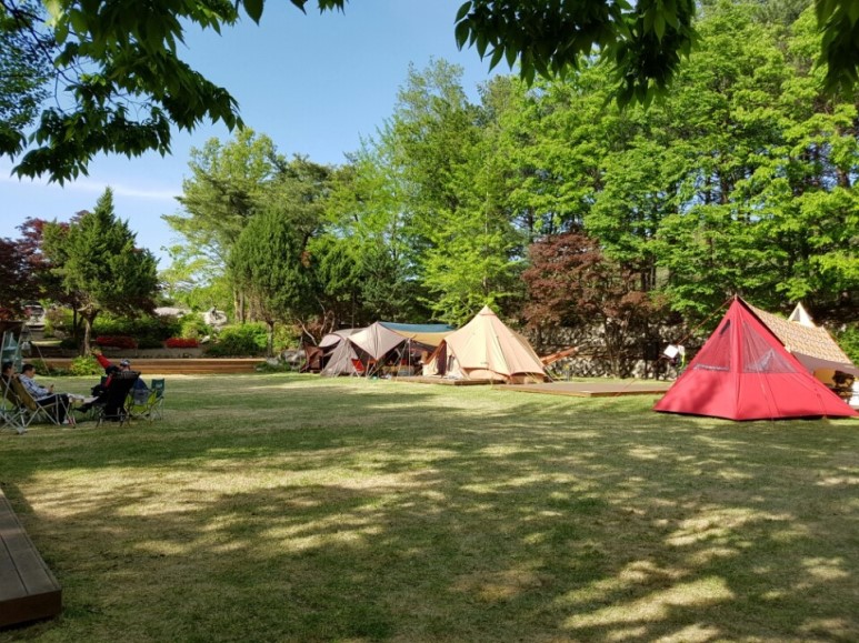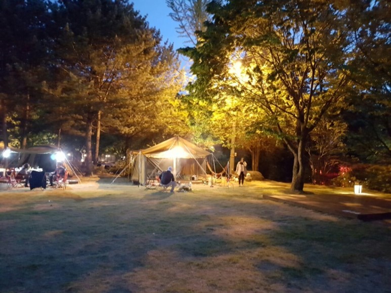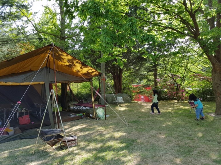 텐트 밖으로 보이는 잔디 마당이 꼭 집 앞마당 같은 느낌~^^