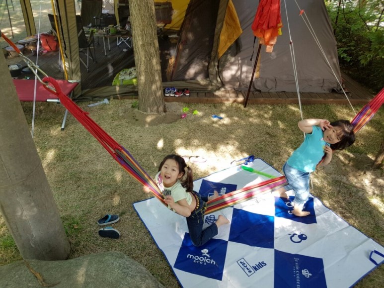 애들은 해먹 하나 가지고 두세시간 지치지도 않고