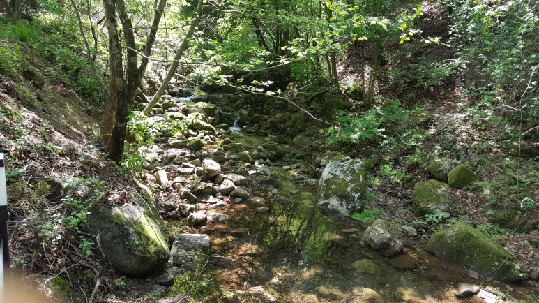 수영장 옆으로 졸졸 물이 흐르는 작은 계곡.