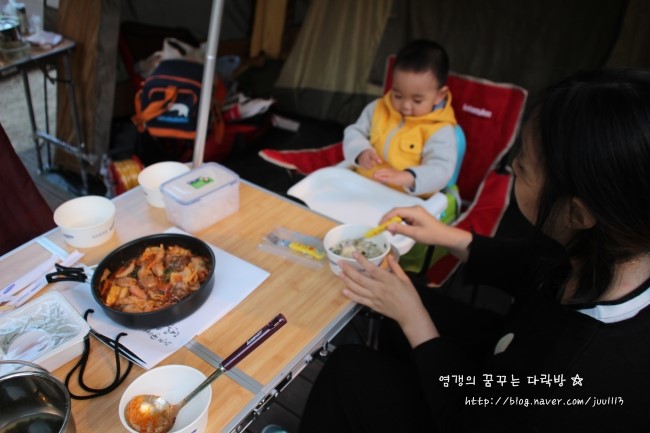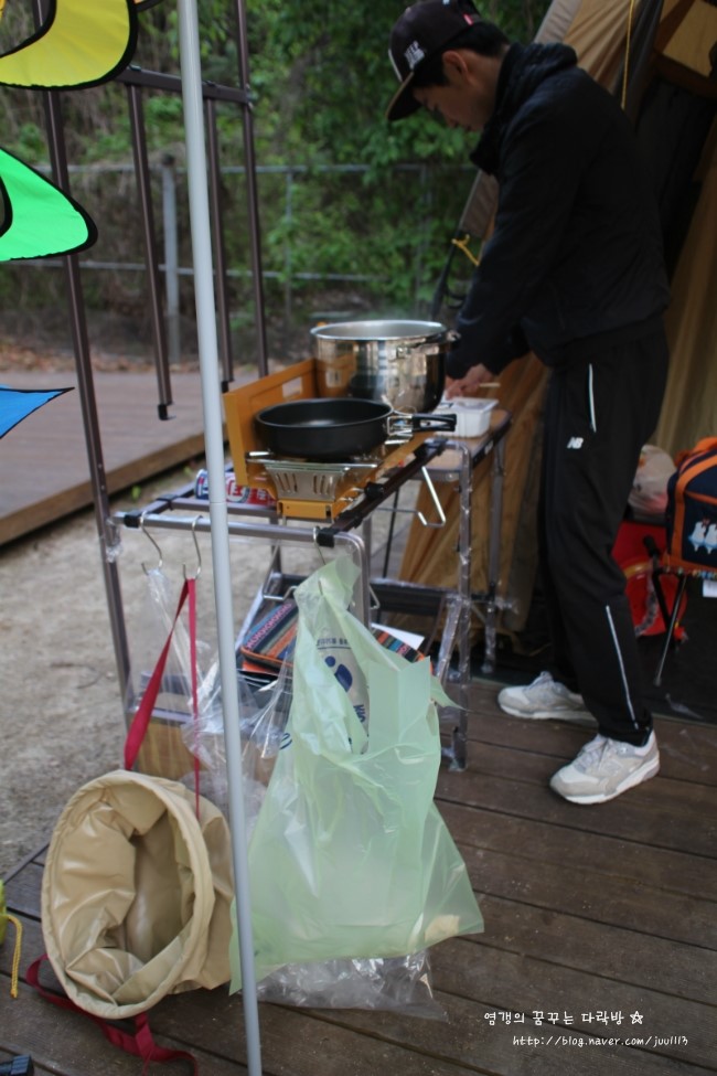 저녁때 도착해서 텐트치고 배고픈데 요리까지 해야 해서 예민해질 뻔.....