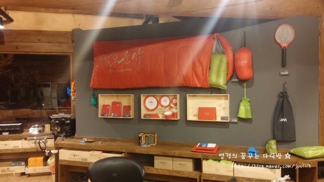 베게나 화로같은 간단한 캠핑장비도 팔고 있음.