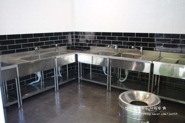 개수대도 공간도 넓고 싱크대가 여러대라 크게 붐비지는 않을것 같다.