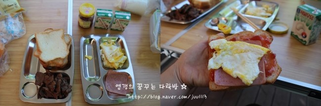 빵도 산처럼 쌓아놓고, 계란후라이도 인당 2개씩 ㅋㅋ
