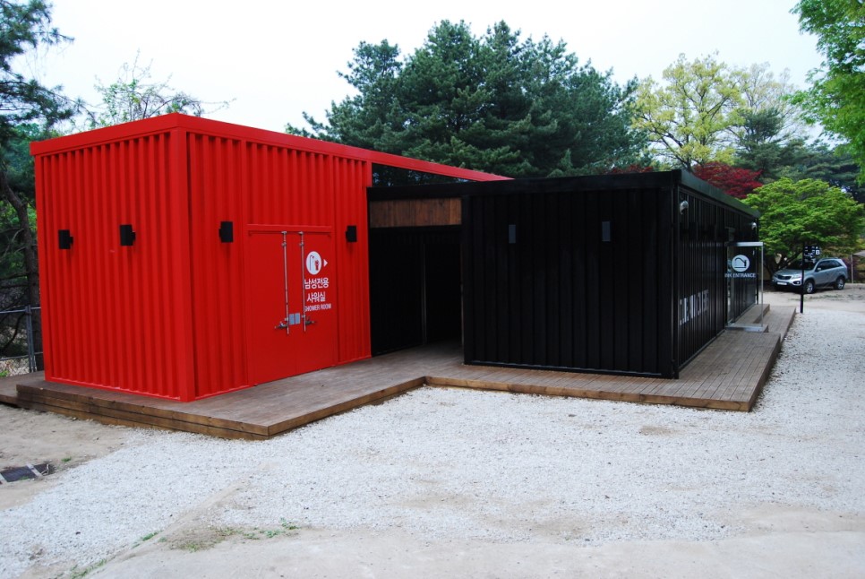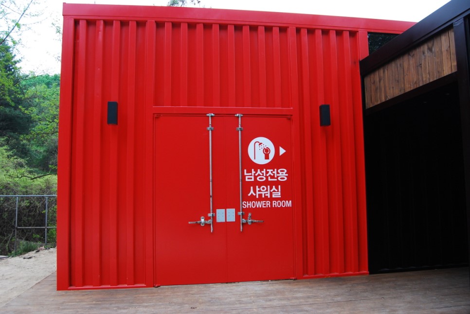 빨간색 건물은 샤워실입니다.
