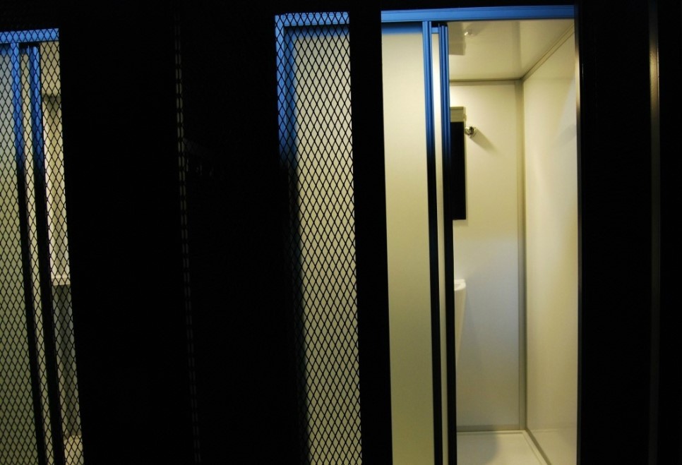 샤워실로 들어가면 복도가 있고, 개별 샤워실로 들어가기 전에 철망 형태의 펜스?의 공간이 또 있습니다.
