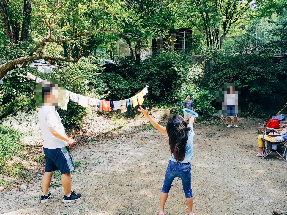 그 앞 공간은 이렇게 빨래도 널수있고 베드민턴 원반던지기등을 할수있는 우리만의 공간이 좋았어요.