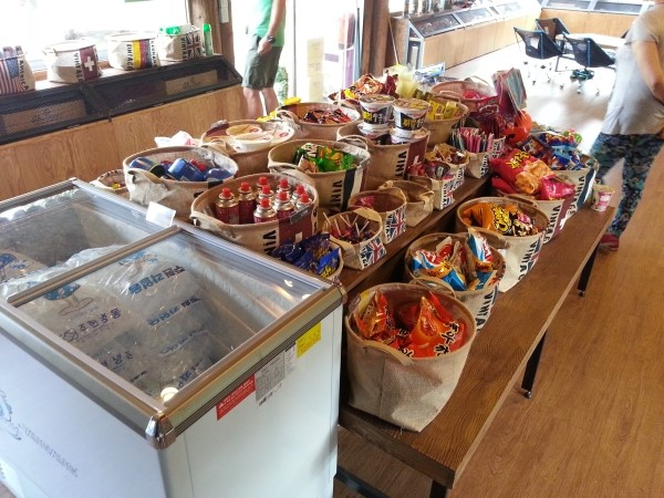 참새방앗간을 살펴보면 간단한 간식이나 라면, 가스 얼음등을 판매하고 있다.