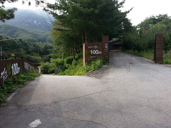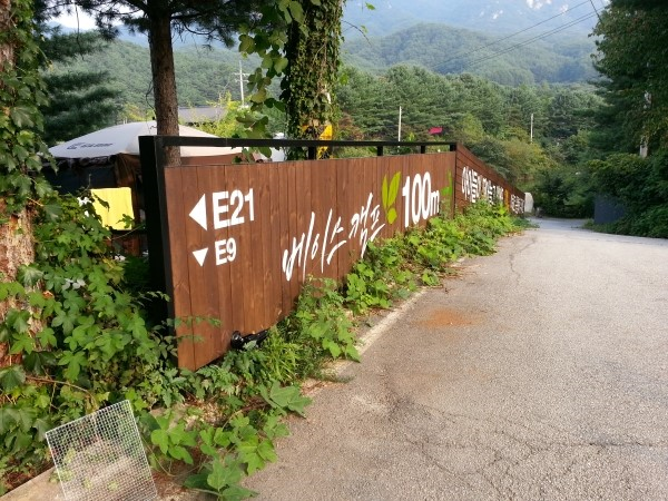 좌측의 E 구역과 펜션입구의 사이길로 내려가면 베이스캠프로 진입할 수 있다.