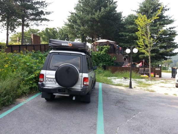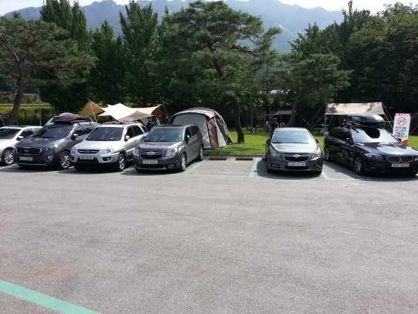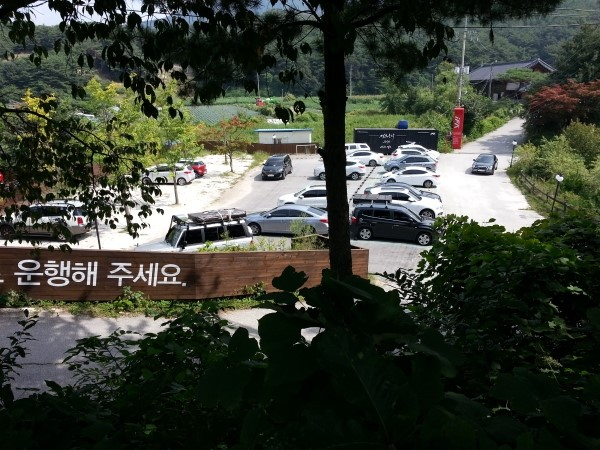 베이스캠프로 진입하기전에 E구역 주차장이 보인다. 주차장은 예약자에 비해서 넉넉한편이다.