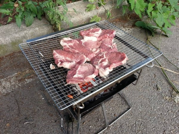 저녁의 시작은 참나무 장작으로 숯을 만들어 목살로 시작해본다.