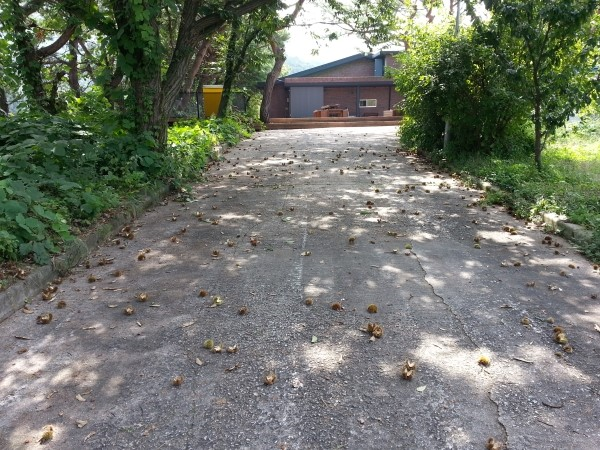 펜션올라가는길에 가을임을 물씬느끼게 해주는 밤송이들이 떨어져있다.