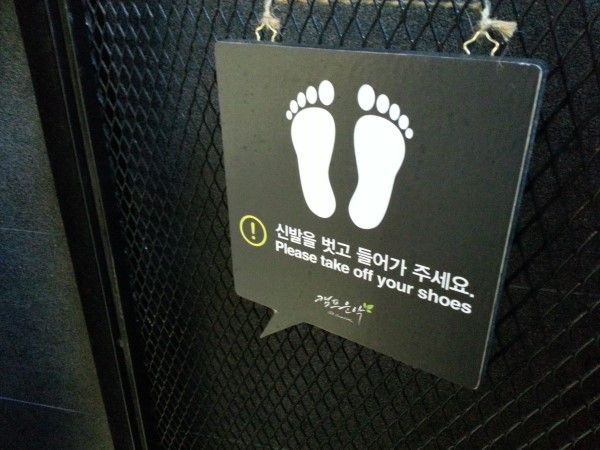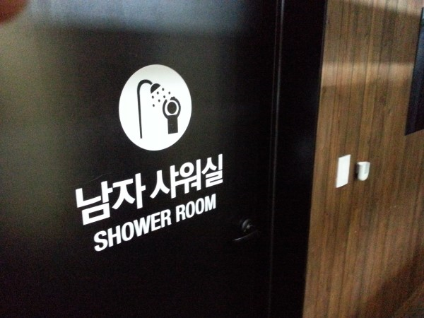 샤워실표시는 남자는 검정으로 되어있고 여자는 빨간색으로 표시되어있다.