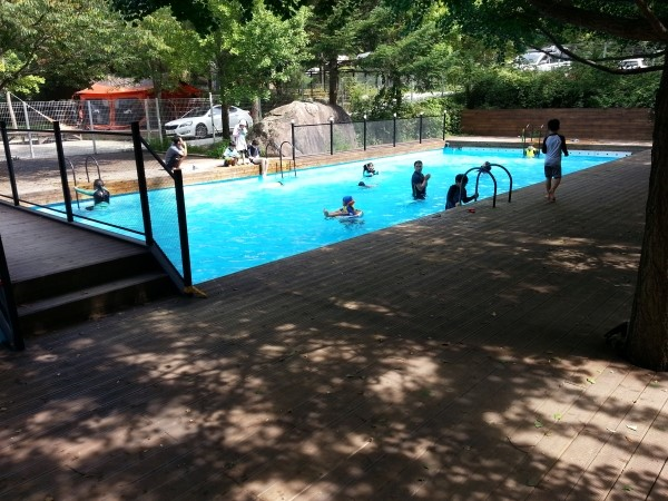 수량이 매우부족해보이는 수영장옆의 계곡이다. 계곡이라고 하기에는 시냇물이 맞겠다. 아주작은 송사리만 보일뿐
