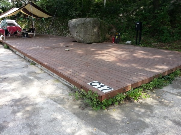 캠프운악 안내도 뒤로 A 구역의 유일한 파쇠석자리이다. 데크는 3개의 자리로 구성되어 있다.