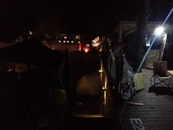 야간에 더욱 운치있어보이는 E 구역, 숲속이 아닌 개방감 있는 넓은 공간을 원하시는 캠퍼에게는 추천하며
