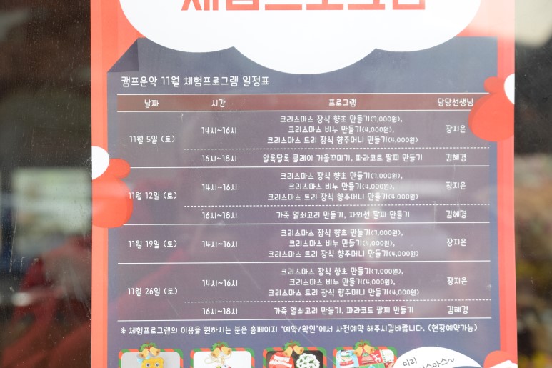 11월 체험프로그램은 이정도이고 매월 변경되니 아이들 있으신 분들은 참고 하시면 좋을꺼 같아요 ㅎ