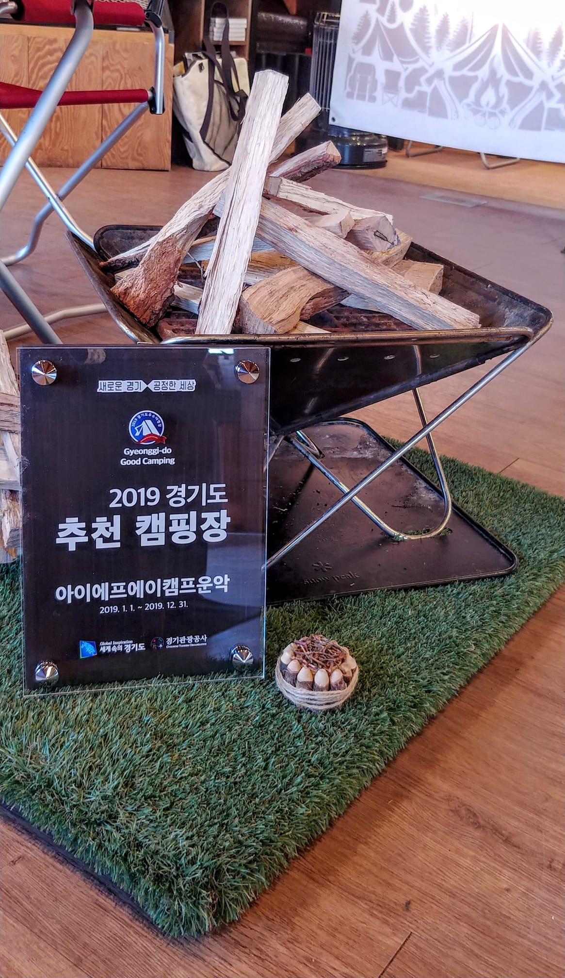 경기도내 캠핑장 426개소 중 서면, 현장 평가를 거쳐 25개소가 우수 야영장으로 선정되었고, 그중 캠프운악도 인증패 수여식에 참석하였습니다. ????