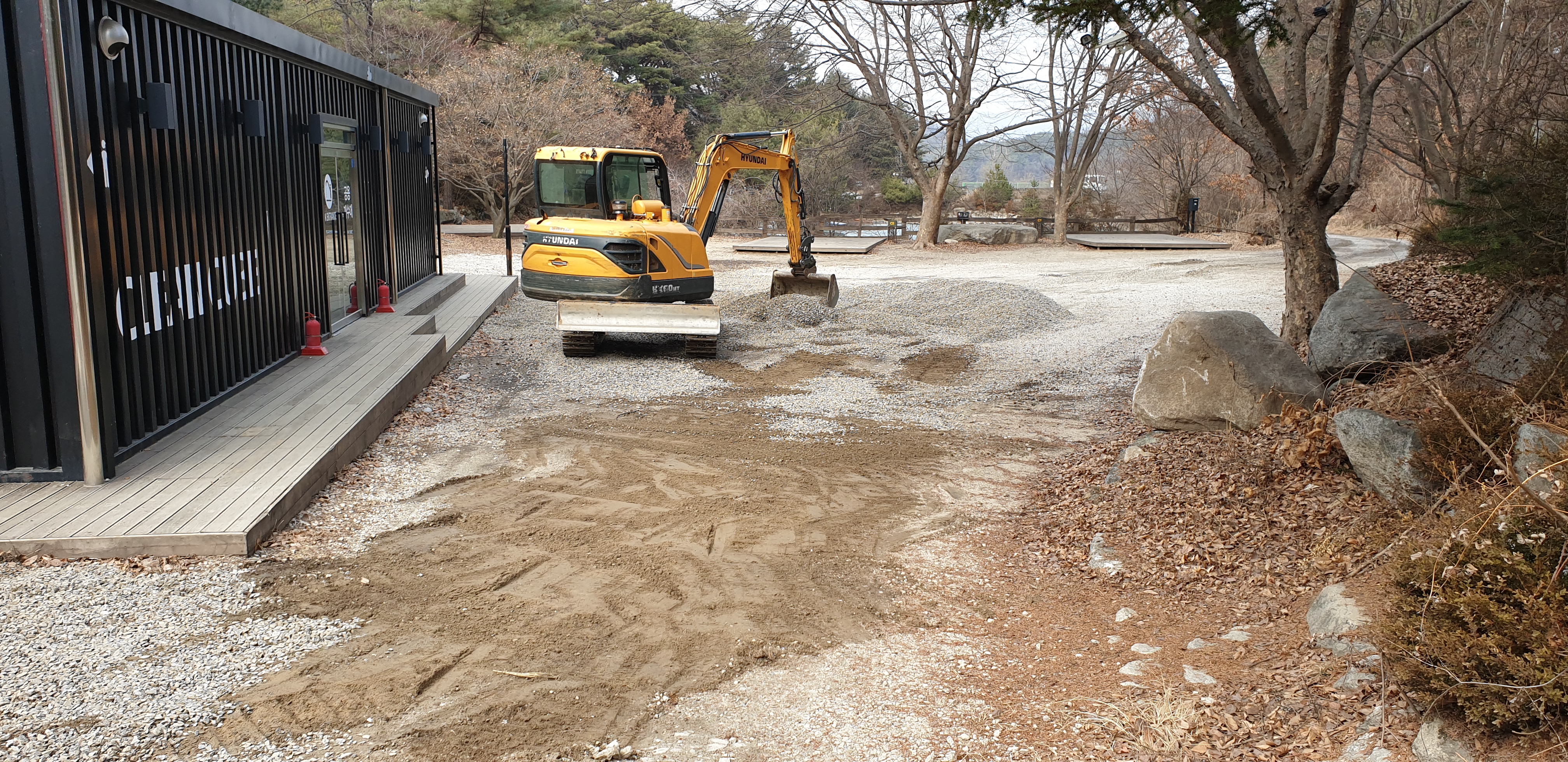 지난주에는 호수가 진입로부터 클린큐브 앞을 비롯한 자갈이 손실된 곳을 보수하였습니다.