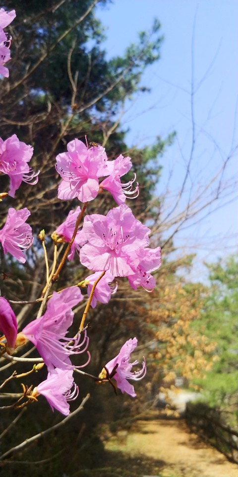 타프 없이 캠핑 의자에 앉아 일광욕하기 좋은 날, 꽃 피는 봄이 왔습니다.