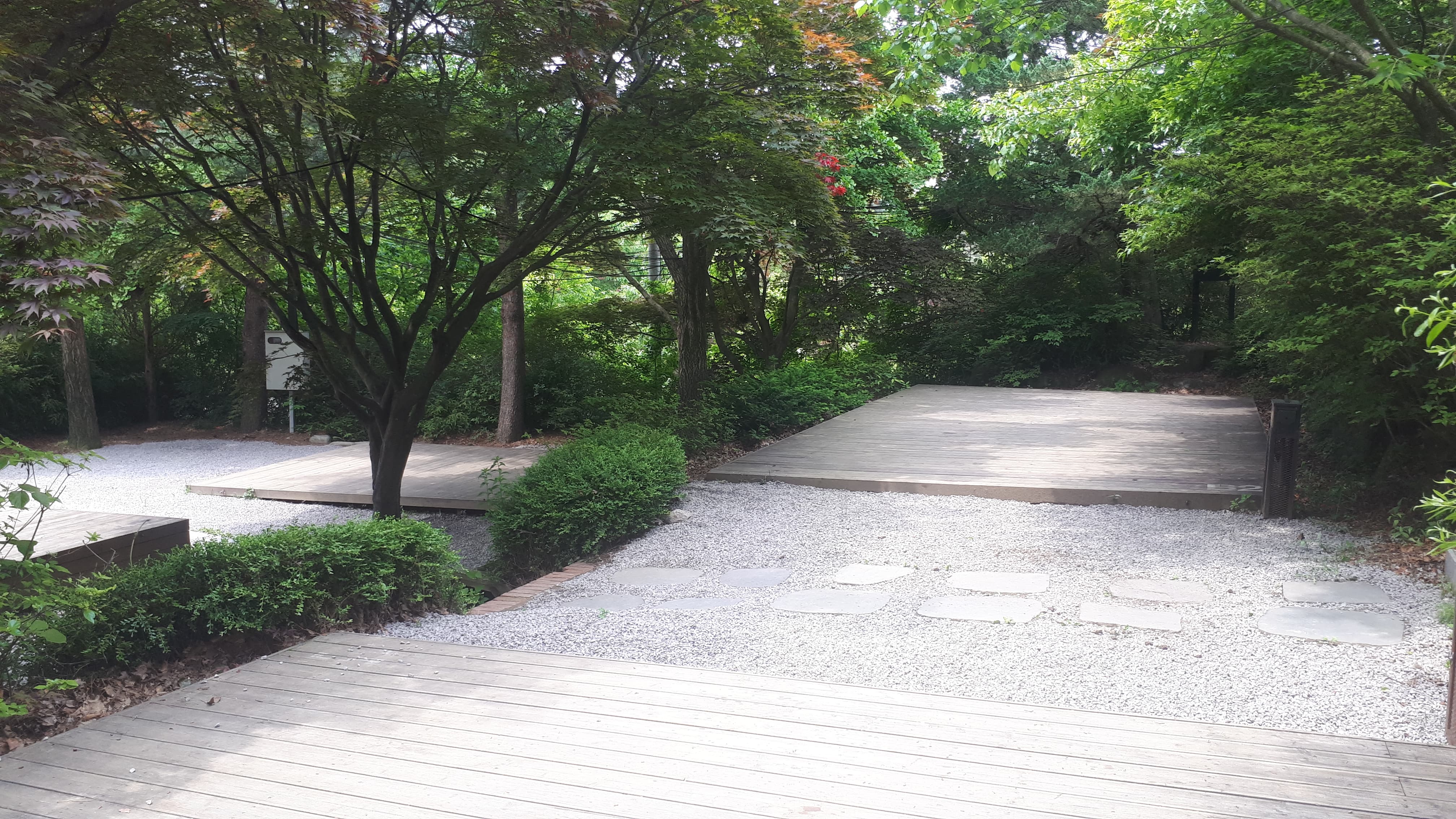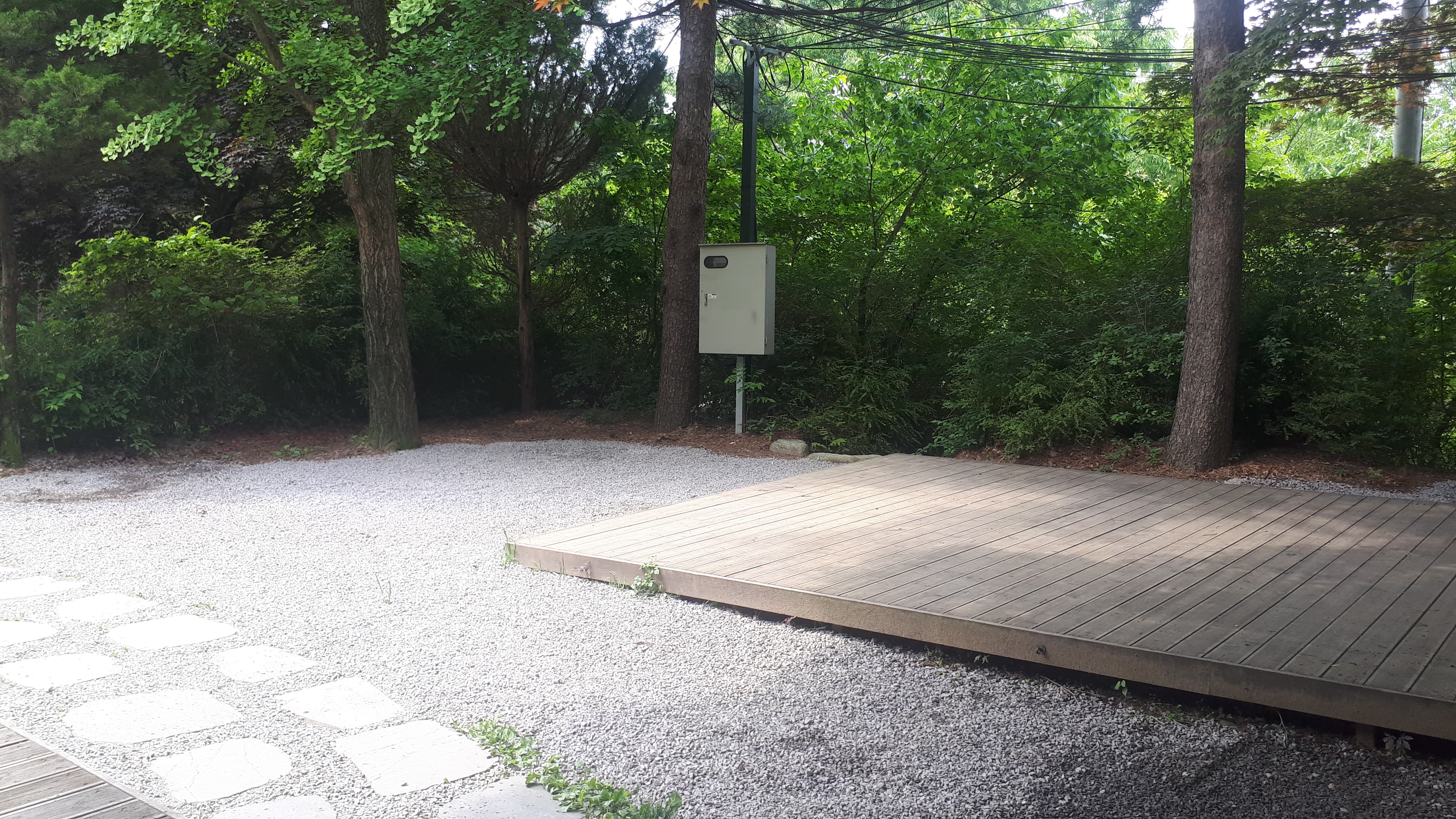우천시 물고임 및 질척거림 현상을 방지를 위해 지반 평탄화 작업과 더불어 먼지 발생의 원인이 되는 마사토 구역에 작은 파쇄석을 배치 하여, 먼지 발생 억제와 쾌적한 캠핑 환경 조성을 위한 공사를 실시하였습니다.