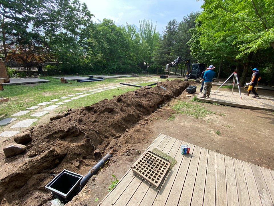 또한 B구역 12~17번 사이트 앞 노후 배수관은 새로 설치하여, 원활한 배수가 가능하도록 개선하였습니다.
