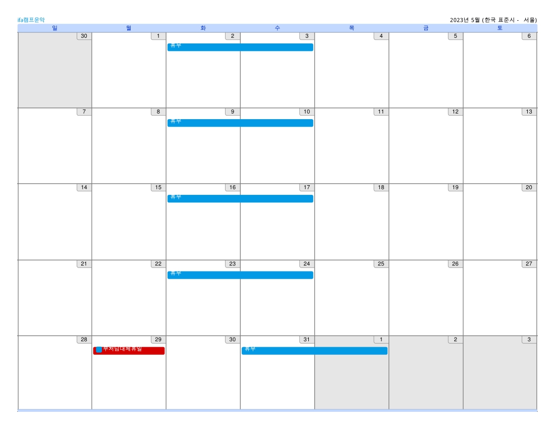 캠핑장 운영, 점검 등에 따라 휴무 일정은 변경될 수 있습니다.